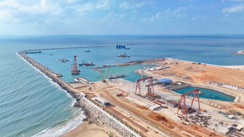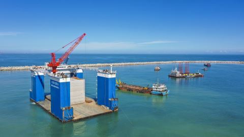 揭阳港惠来沿海港区南海作业区通用码头建设加速推进。
