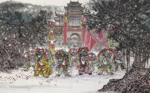 “榕荫遍覆鱼鳞屋,胜似河阳一县花”——终章掷下生存美学的战书,终成天人合一的图腾。此句最是惊心:当西晋时河南人夸耀河阳县令潘安组织民众广植桃李,形成“河阳一县花”盛景时,方彭年却掷地有声宣告榕城“胜似河阳一县花”。榕冠如云覆压鳞次栉比的屋瓦,鱼鳞瓦浪在树影里起伏。花事易逝,榕荫长青;花供观赏,榕荫却庇护众生。花事浮艳终随季风飘散,而榕荫之下:茶摊烟气袅袅,棋枰落子铿然,书声穿巷而过,万千生计在凉荫里蒸腾。潮汕人早已参透大美至简的真谛——真正的风华不在奇花异草,而在可栖居的浓荫,在榕根与屋基不灭的纠缠共生里。