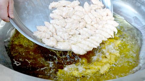 炸制是最后一道难关。油温需控制在140摄氏度左右,中小火慢炸约3分钟。师傅凭经验观察虾枣的颜色,待其表面变成均匀的金黄色,便可捞出沥油。“炸太短时间里面还不熟,而炸太过,口感会柴,所以这个度的把握很重要。”