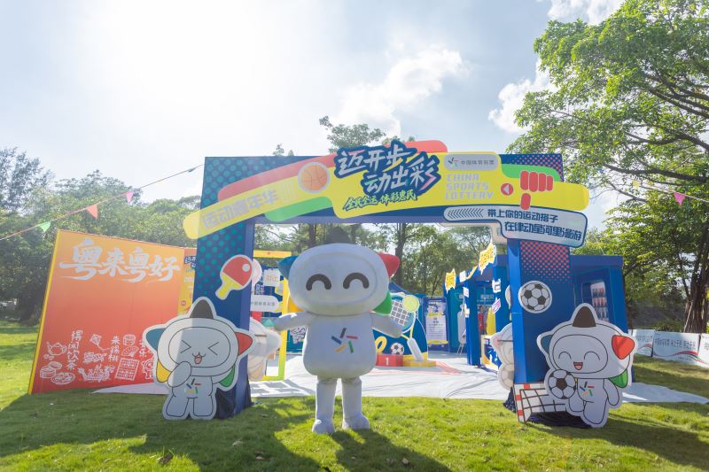 公园中心的中型品牌展示区成了“集章大本营”。展示区制作的公益展板前,不少人驻足细看——有人指着“公益金支持全民健身设施”的图文感慨:“家门口的健身路径,原来有体彩的功劳!”而最吸睛的当属憨态可掬的“乐小星”气模,它举着体彩公益宣传牌在旁“指挥”,时不时和伸手互动的小朋友击掌,圆滚滚的模样萌翻众人。