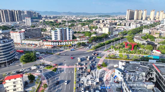 走近揭东区国道G206线交通局大圆,映入眼帘的是道路绿化与城市交通的有机融合,既缓解了交通的喧嚣,也为城市注入盎然生机。以路口为中心,崭新的建筑外立面沿各个方向不断延伸,沿途绿树成荫、花草相映,一条集功能、景观与文化于一体的复合型风貌带铺展开来。