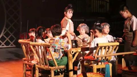 在当天活动的舞台上,育才学校的小演员们化身潮汕文化的“小小代言人”,用细腻表演复刻出最鲜活的潮汕日常:街头摊主搅粥生烟,是“人间烟火气,最抚凡人心”的生动注脚;指尖捏就红桃粿,是“巧手承古意,吉纹藏乡情”的民俗延续;潮腔对话婉转入耳,满是市井里的温情暖意;一曲《桃花过渡》悠扬响起,唤起台下“旧曲新听忆往昔”的集体共鸣;终场英歌舞起,少年们踏鼓而行,将潮汕人“刚健豪迈传薪火”的精气神展现得淋漓尽致……学生们在角色扮演中触摸家乡的历史,在台词唱腔中感知民俗的温度。这种从“知”到“情”的转化,让表演充满真挚感染力。这群潮汕文化的小小“传承者”,恰如“雏凤清于老凤声”,为文化传承注入活力。
