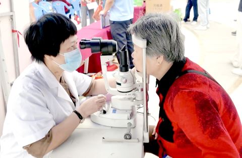 活动现场还设置多个互动体验区。巧手匠心区内,老人们动手制作手工驱蚊香囊,感受非遗魅力,同时学习基孔肯雅热预防知识;健康守护区内,专业医生提供免费视力检查(见图。胡旭莹 摄)、眼底疾病筛查和眼健康咨询,普及用眼保健知识;智慧助老区重点开展反诈宣传,讲解诈骗防范技巧并推广“国家反诈中心”APP,同时辅导掌握智能手机常用功能,帮助老年人乐享智慧生活;养生交流区则提供四季养生和饮食调理知识讲解,并准备了应季养生茶饮供大家品尝,倡导健康生活方式。