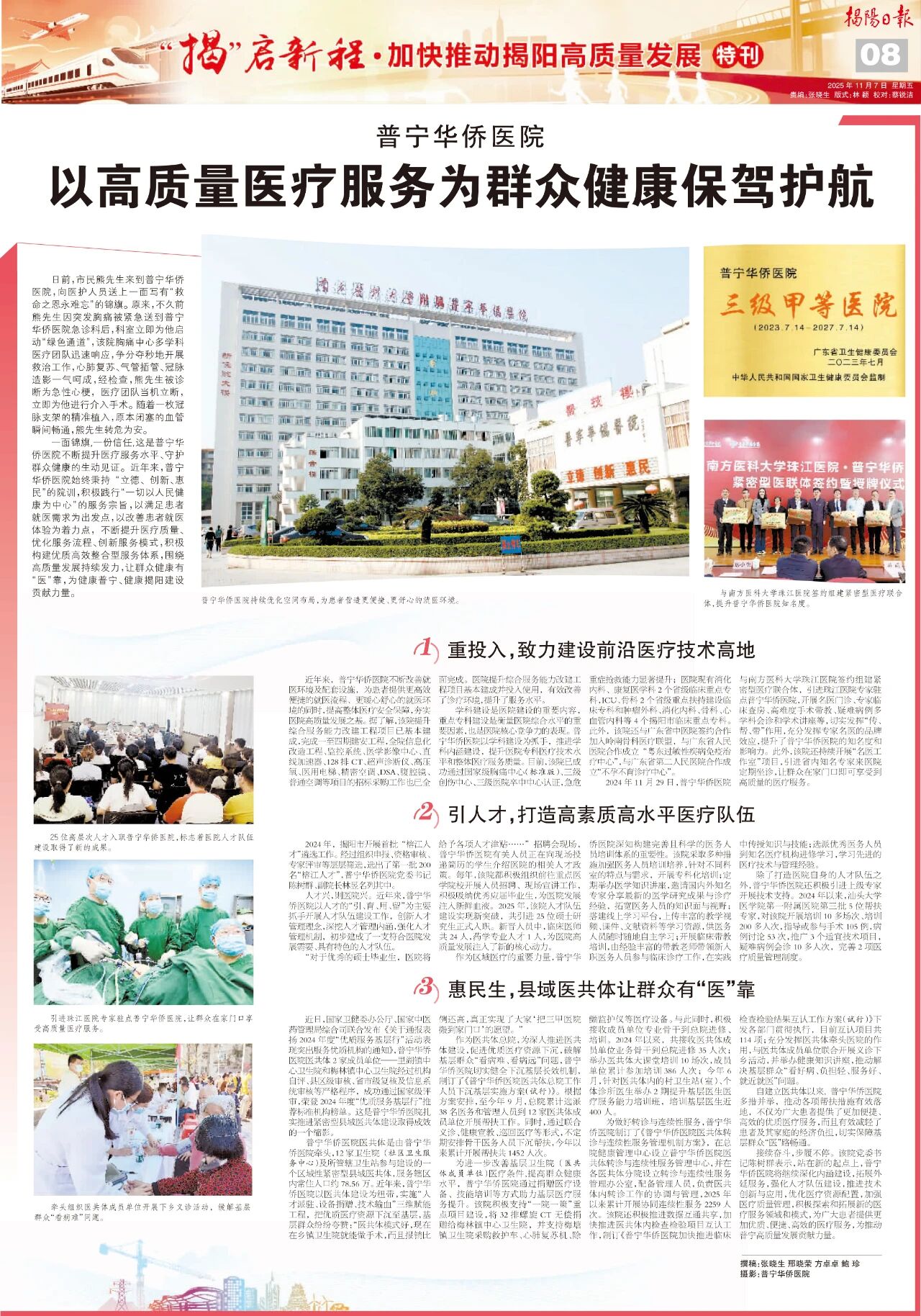 引进珠江医院专家驻点普宁华侨医院,让群众在家门口享受高质量医疗服务。