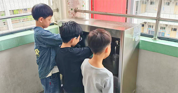 崭新的饮水机银光闪闪,外观简洁大方,功能实用便捷,不仅能提供清澈甘甜的直饮水,还具备温控、五级过滤等多重保障,让孩子们随时都能喝上安全、健康、温热的放心水。