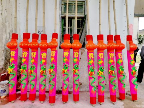 有着3条飞龙,双凤绕花,夹花舞人和夹花灯笼图案的6 米大龙香。