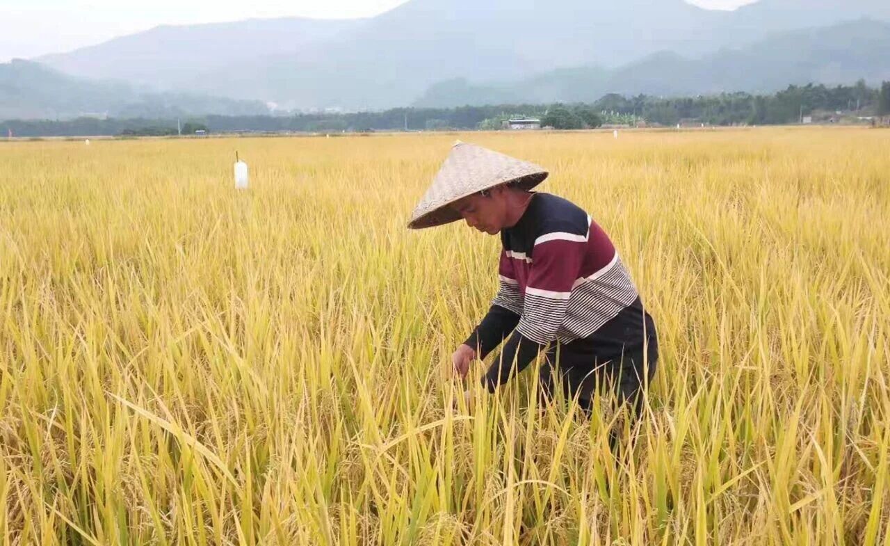 沉甸甸的稻穗,丰收的喜悦在农民们的眉梢上。