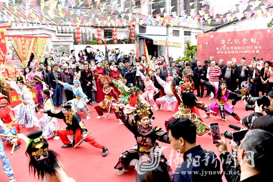 7日,榕城区孙乙纪念馆内张灯结彩、鼓乐喧天,庆祝建馆18周年系列活动启幕。青狮欢腾踏歌而来,英歌舞气势如虹,传统民俗展演轮番登场(见图。林洁松摄),观众掌声雷动、喝彩不断,为这座承载着城市记忆的文化地标,增添了浓厚的喜庆氛围。