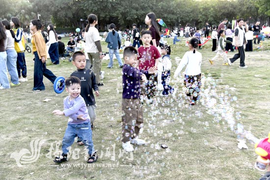 吹泡泡,是深受儿童喜爱的户外游戏。孩子们欢笑着追逐泡泡,兴奋地伸手戳破。他们快乐奔跑,尽情享受与泡泡互动的奇妙时光。这个游戏不仅能锻炼幼儿身体协调能力,还能培养合作意识。它为幼儿带来轻松愉悦,有力促进其认知、情感与社交发展。 林洁松 文/摄