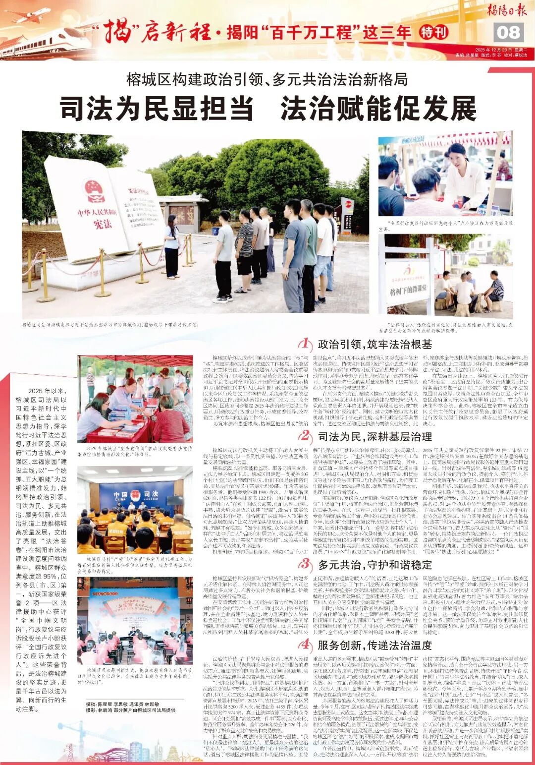 榕城区司法行政机关主动将工作融入发展主线与稳定底线,以一系列扎实举措,为榕城区高质量发展贡献法治力量。