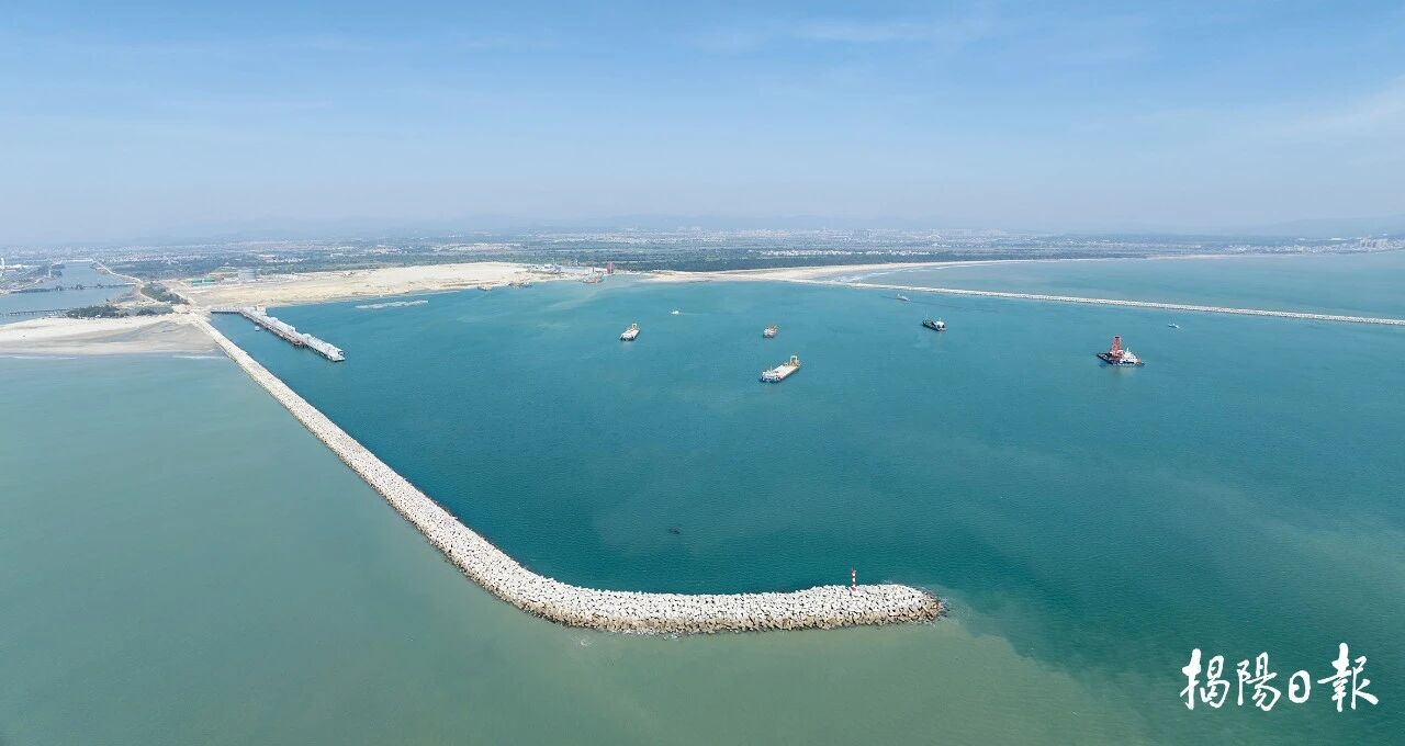 向海而生,港口赋能。揭阳港南海作业区2#港池公共码头项目正全力冲刺,这个揭阳首个千万吨级吞吐量公共码头,涵盖通用、LPG、液体散货等多种泊位,设计年通过能力达1207万吨,液体散货泊位预计年底建成,LPG泊位计划明年6月份建成,码头项目建成后将成为离国际航线最近的重要枢纽。与此同时,广东石化原油码头第二个30万吨泊位加速建设,去年单月最高接卸175艘船舶的纪录即将被刷新。