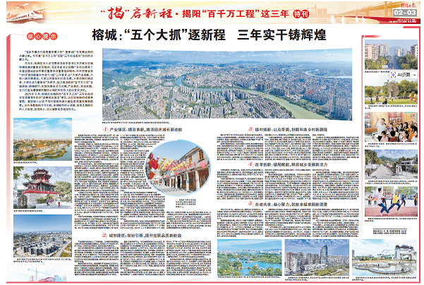 榕江水暖春潮涌,岐山叠翠景致新。三年来,在榕城这片热土上,“百千万工程”的宏伟蓝图,正借由一项项扎实举措、一个个具体项目、一次次暖心服务,从纸面落地生根,从愿景化为实景。立足新形势、奋进新征程,榕城区将继续聚焦产业能级提升、城市功能完善、镇村风貌蝶变、民生福祉改善、改革赋能增效,持续深化“五个大抓”,着力破解发展短板,向着“五年显著变化、十年根本改变”目标奋勇前行,为全市加快建设产业强市、和美揭阳,全力打造粤东高质量发展新增长极贡献榕城力量。