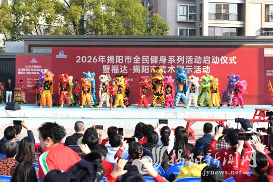 18日上午,揭东区榕泰全民健身广场锣鼓喧天,福达·揭阳市武术展示活动在这里举行(见图。郑楚藩 摄),拉开了2026年揭阳市全民健身系列活动的序幕,让大家近距离感受“武术之乡”的实力与文化魅力。据悉,即日起至马年春节期间,全市将推出30场赛事活动,为市民游客带来一道“体育+”文化大餐。