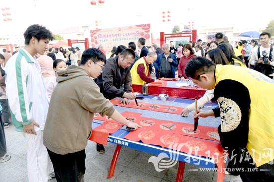 当天下午,三大子活动同时举行。“墨香送福·文化惠民”环节,多位省、市书法名家挥毫泼墨,将“竹报平安”“福满笋乡”等寓意融入春联,为村民送上定制化新春祝福(见图。林洁松 摄);“村艺体验·非遗传情”以“活态演示+亲子互动”模式,让孩子们亲手剪纸、舞英歌等,近距离感受非遗魅力;“潮剧传习·雅韵扎根”活动中,专家与本土传承人现场授课,让潮剧雅韵在青年一代心中扎根。