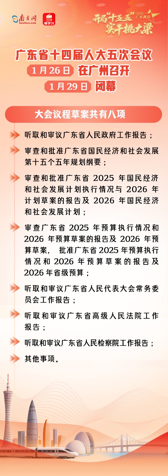 4.审查广东省2025年预算执行情况和2026年预算草案的报告及2026年预算草案,批准广东省2025年预算执行情况和2026年预算草案的报告及2026年省级预算;