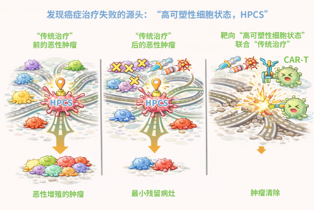 进一步的研究表明,在肿瘤发生早期清除“高可塑性细胞状态”肿瘤细胞能有效阻断其恶性演进;而在肿瘤晚期中靶向清除该类细胞,则可显著抑制肿瘤生长。