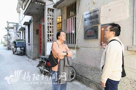 1938年10月,为使党的工作适应抗日形势的发展,揭阳县工委的领导机构和人员作一些调整和变动,撤销军事部,宣传部长曾畅机调党校学习,组织部长曾广调往新亨至丰顺一带开辟新区,担任第四区区委书记,县工委增设青年部和妇女部。机关地址设在榕城郑玲家、东桥巷启蒙小学旧址、中山路刘百泉家、韩祠街头吴凯痔疮诊所(可回看本系列第39站)等地。
