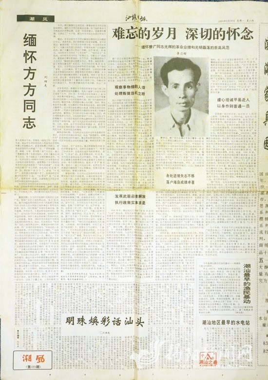 1994年9月24日,《汕头日报》刊登罗天、徐扬、林川文章《千秋功罪,历史无私——论方方同志为革命鞠躬尽瘁的一生》及罗天文章《风范永存——深切怀念曾广同志》。