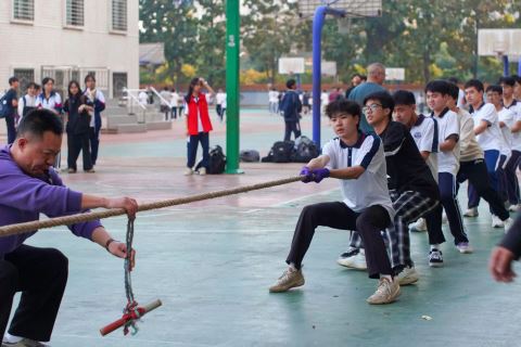 活动中,随着裁判一声哨响,比赛正式拉开帷幕。赛场上,各班参赛队员紧握绳索、重心下压、步调一致,在一声声“加油”中全力以赴(见图。通讯员 摄)。场边,班主任指挥若定,啦啦队呐喊助威,欢呼声、掌声此起彼伏,将比赛氛围推向高潮。学生小杨说:“拔河不仅是力量的比拼,更是默契的考验。为了班级荣誉,我们每天利用课余时间练习战术,这次比赛让我们更团结了!”