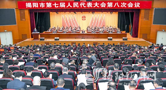 4日上午,揭阳市第七届人民代表大会第八次会议在市区召开。大会主席团常务主席、市委书记、市人大常委会主任曾风保主持开幕会。市委副书记、市长曲晓杰向大会作政府工作报告。