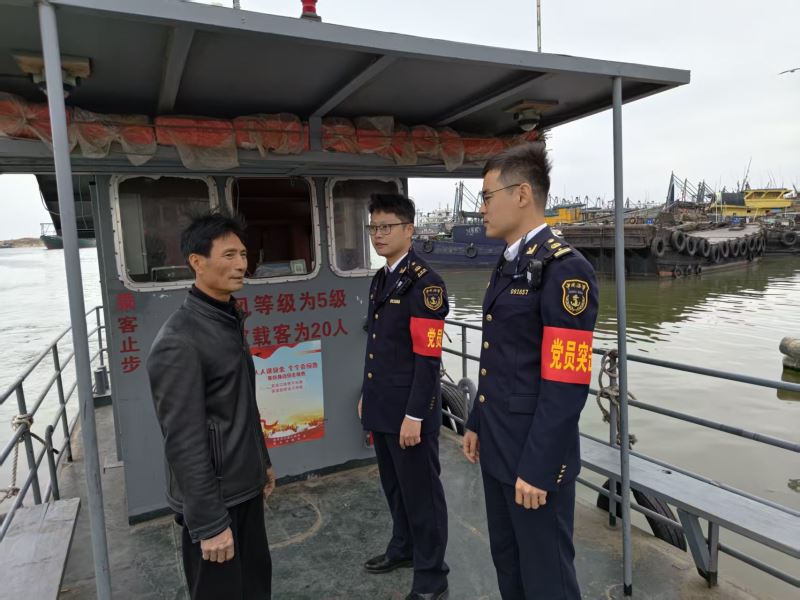 巡查过程中,党员突击队员结合辖区渡运特点,紧扣水上安全保障关键要求,向渡工逐一明确安全标准、强化责任意识,重点提出六项安全提醒:一是严格做好渡口渡船安全自查,全面排查安全隐患,坚决杜绝无证驾驶行为,确保船舶处于良好适航状态;二是航行期间务必加强瞭望,密切关注通航环境,主动避让过往渔船,防范碰撞风险;三是严格落实危险品禁运规定,严禁载运烟花爆竹等易燃易爆危险品,从源头守住安全底线;四是坚守载客定额标准,严禁超载航行,保障每一位乘客的出行安全;五是密切关注春运期间气象变化,及时获取气象预警信息,提前做好恶劣天气防范应对措施,严禁冒险开航;六是节日期间做好乘客登离船秩序维护,主动向乘客开展安全提醒,普及水上安全知识,提升乘客自我保护意识。