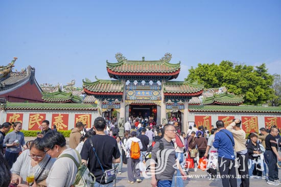 假日期间揭阳古城各景点热闹非凡。图为游客在城隍庙体验民俗文化。本文图片除署名外均由 林碧鸿 郑佐晖 摄