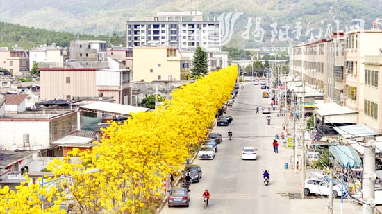 春光正好,花开正盛。每年初春,揭东区埔田镇车田村的黄花风铃木枝头繁花似锦,在暖阳与微风中摇曳生姿,将这条人来人往、车水马龙的道路,晕染成充满希望与欢乐的春日长卷,引得村民与游客纷至沓来,共享并定格明媚春光。何小妍 文 林碧鸿 郑佐晖 摄