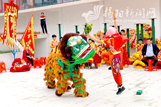 “弥勒佛戏狮”,融入醒狮动作