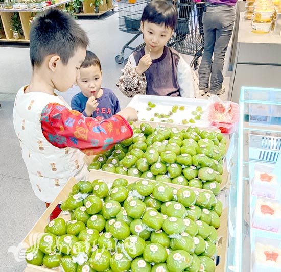 记者采访了解到,除了农贸市场的传统朴籽粿,不少市民还会到面包店、超市选购青团作为搭配。艾草制作的青团碧绿油润,内馅多为豆沙、芝麻,口感绵密,契合清明时节的饮食习俗,深受年轻市民的喜爱。传统朴籽粿配新式青团,一黄一绿,相映成趣,既守住本土传统,又迎合大众口味,成为今年清明备节的新组合。“市场买朴籽粿是老传统,再到超市带一盒青团,孩子爱吃,一家人都满意。”正在超市选购的市民李女士说道:“清明快到了,总会买些青团回家应应景,看到有新口味,就买来尝尝。”