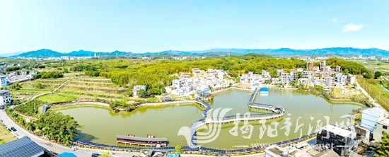 碧水绕村、廊桥蜿蜒,站在揭西县塔头镇锦龙村的观景台远眺,澄澈的池塘边绿意盎然,错落的民居掩映在青葱草木间,一幅宜居宜游的和美乡村画卷正徐徐展开。