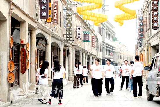 徒步活动中,来自揭阳市直、榕城区直单位,揭阳农商银行和揭阳建工集团的青年代表们组成红、橙、蓝3支队伍,从学宫广场出发,沿着中山路骑楼街、绍兴路等古城主干道稳步前行。沿途,城隍庙的古朴庄重、状元坊的文气斐然、揭阳学宫的儒风浩荡,一一映入眼帘。朝气蓬勃的队伍穿梭其中,成为古城一道亮丽的风景线(见上图。林洁松 摄)。青年们或在学宫前驻足沉思,感受传统文化的深厚底蕴;或在骑楼下轻抚砖石,触摸岁月留下的痕迹。在徒步过程中,大家相互交流协作,凝聚起青春共识。