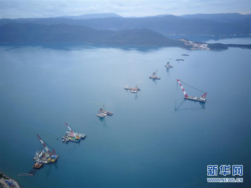 这是2月1日在克罗地亚南部的科马尔纳航拍的佩列沙茨大桥施工现场。 佩列沙茨跨海大桥项目由中国路桥公司牵头的中国企业联合体于2018年中标该项目后开工,大桥设计总长2440米,建成后将横跨亚得里亚海小斯通湾,连接隔海相望的克罗地亚领土。目前该项目进展顺利,已全面进入水上施工阶段。 新华社记者 高磊 摄
