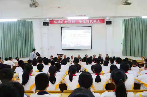 4月20日下午由榕城区关工委主办,榕城区精神文明建设委员会办公室,榕城区教育局关工委协办,揭阳岐山中学承办的"弘扬庄老精神 争做时代新人"--庄世平先生爱国尽忠故事宣讲活动启动仪式首场宣讲会在揭阳岐山中学举办。