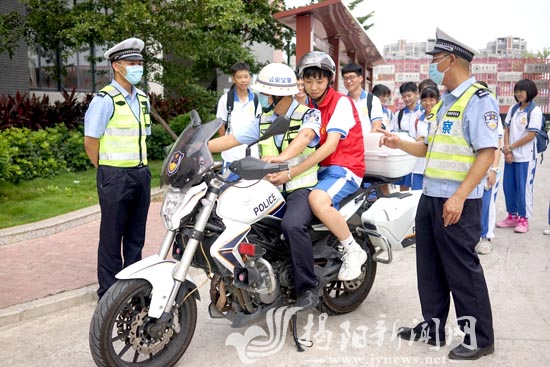 在户外宣传区,民警准备了形式多样、内容丰富的互动体验活动:在交通安全展板展示区,民警带着学生们仔细参观,逐一宣传交通安全法律法规,耐心细致解答学生们提出的各种交通安全问题;在酒精检测仪展示台前,学生们积极参与酒精检测仪吹气检验模拟试验;在警用装备展示区,民警向学生们介绍警用摩托车的用途,并让学生们坐上警用摩托车进行体验(见图。通讯员 摄)。参加活动的学生纷纷表示,此次活动真正做到寓教于乐,既提高了大家的参与热情,又能够学到交通安全知识,进一步增强自己的交通安全意识。
