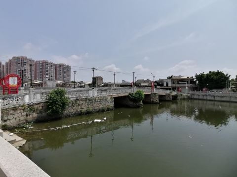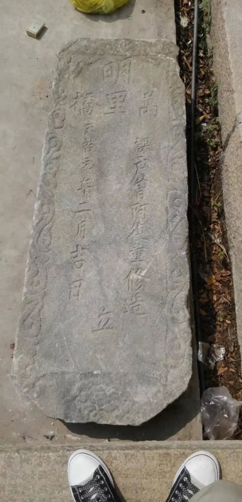 万里桥和登岗桥是明清两代驿道上的官桥,前者位于古揭阳县桃山都(今登岗镇浦尾村)和海阳县大和都(今潮安区凤塘镇东陇村)交界处,后者则在古揭阳县桃山都界内(今登岗镇登岗村)。对于万里桥,清康熙《海阳县志》卷一“山川(津梁附)”所载甚简,仅有“……曰万里桥,旧名李浦”相关的不到十字,而其后的清雍正《揭阳县志》卷一“津梁”载上述两桥有:“万里桥,在桃山都海揭分界,去县治四十里,三间,广各二丈五尺,高二丈,宋绍兴八年都民翁元创建。登冈桥,在桃山都,五间,广各二丈五尺,高二丈,嘉靖壬辰行人薛侃率众建。”则比上述《海阳县志》所载详细。宋绍兴八年(1138)后两年(1140)从原海阳县析出永宁、延德、崇义三乡重置揭阳县[宋宣和三年(1121)设,绍兴二年废],可知肇建万里桥的都民翁元当时为海阳县人,加上重置揭阳县后万里桥位于海阳和揭阳两县交界处,故而同时入载康熙《海阳县志》和雍正《揭阳县志》。近年发现明天启元年(1621)一块万里桥“重修造”的石碑,重修者为“课户曾阿复”,曾阿复的身份是“课户”(家中有纳税丁口的民户),与宋代肇建者都民翁元一样都是没有官方背景的富有“民户”。他是海阳县人还是揭阳县人则未考,这则重修信息在上述两旧县志中也未补载。据笔者调查,上述天启年间重修碑刻今存于万里桥东侧潮安区凤塘镇东陇村一祠堂内,或许曾阿复时为海阳县人(万里桥于2021年初再次重修,此项工作由潮安区主持)。