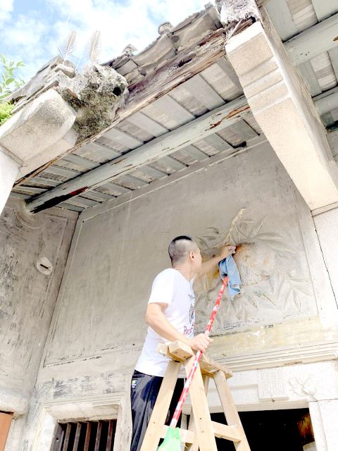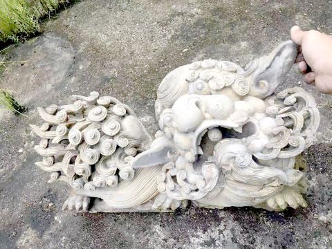 勤修公祠历经百余年岁月风雨,年久失修。这是从梁架掉落下来的木雕狮子,造型生动,工艺精致。 林晓群 摄