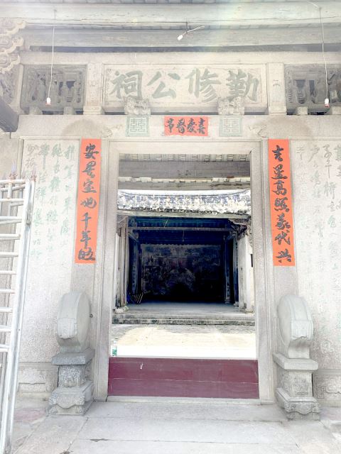 公祠的祠匾阳刻“勤修公祠”四字楷书,落款为御史钟德祥。据史书记载,钟德祥是清同治三年(1864)举人,光绪二年(1876)恩科进士,选庶吉士,授翰林院侍讲。他对书法有很深造诣,曾编有一卷《集古联句》专供“好事者踏门之请”。