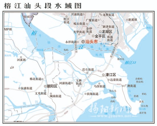 榕江从地都流出,潺潺湲湲,往汕头方向蜿蜒而去。经汕头市金平区牛田洋进入汕头港,经妈屿岛,随后在龙湖区东海岸公园与濠江区北山湾旅游度假区之间汇入南海。起源于普宁南水凹,流经汕尾、揭阳、汕头、梅州、潮州等地,榕江一路欢歌、一往无前,携带着万物的生命故事、沿途的温暖记忆,投入南海壮阔的怀抱,奔向浩瀚无垠的未来。
