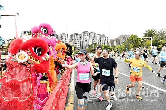 锣鼓震天响,欢乐满赛道。赛道两侧,超“燃”的舞狮、舞龙、英歌舞等非遗表演为参赛选手加油助威,让人不禁感叹:这场马拉松,果然很揭阳!