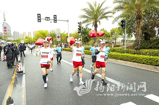 马拉松爱好者陈丽已跑过17场马拉松比赛,这次专门从深圳赶来参加全程马拉松赛。她说:“这是我第一次来到揭阳,无论是入住的酒店,还是行走的街道,处处感受到揭阳人民的热情。赛场上的氛围很浓厚,在这样的环境进行比赛非常舒服,也能更好地发挥自己的水平。”