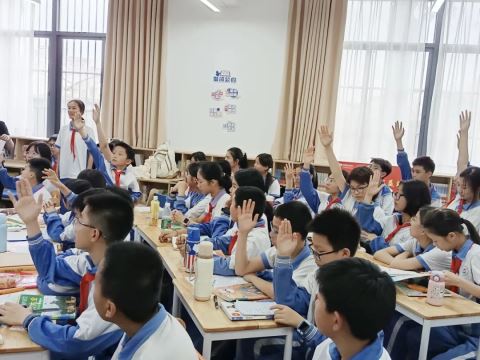 “书中人物我知道”活动中,该校老师通过展示各类书籍人物的相关描述,让同学们通过抢答来竞猜人物,进一步加深同学们对人物形象的认知,激发阅读兴趣,提升对文学作品的理解能力。最后,在知识竞答环节,各类题目涵盖古今中外经典文学作品,既考查知识积累,又关注对作品的理解感悟。经过多轮抢答,同学们依旧热情高涨,踊跃举手。这场知识盛宴展现了同学们扎实的知识功底和良好的精神风貌。