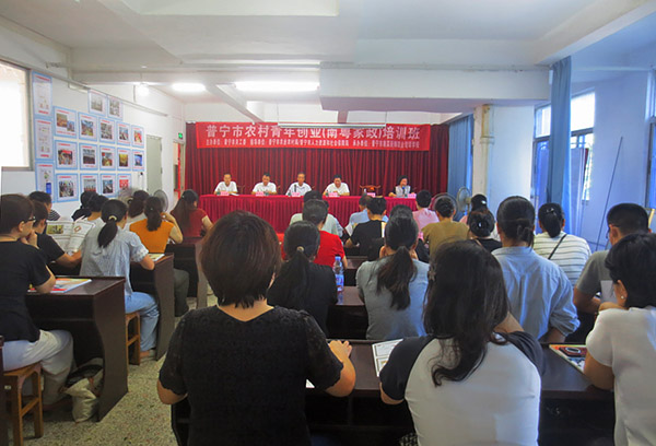 普宁市关工委的同志为学员们上了《传承红色基因》专题讲座,运用普宁革命老区生动的红色故事教育创业青年,在传承红色基因中创业创新,引导学员们学习革命先烈对共产主义的坚定信念和对党的事业无限忠诚的革命精神;传承勇于开拓、敢于担当、苦干实干的优秀品质;发扬廉洁奉公、艰苦奋斗、全心全意为人民服务的优良作风,自觉继承革命传统,传承红色基因,争当有理想有本领有担当的时代新人。