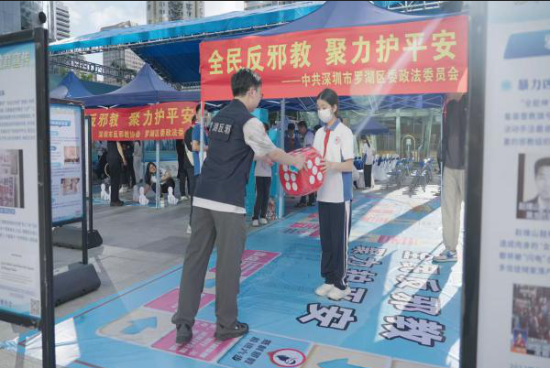 近日,深圳市罗湖区金光华广场热闹非凡,由深圳市委政法委主办、罗湖区委政法委承办的2025年深圳市反邪教宣传周启动仪式在此正式举办。活动围绕“全民反邪教 聚力护平安”的核心主题,通过文艺演出、互动问答、游园集市等受群众欢迎的形式,吸引了数百名市民与学生积极参与,现场氛围热烈高涨。