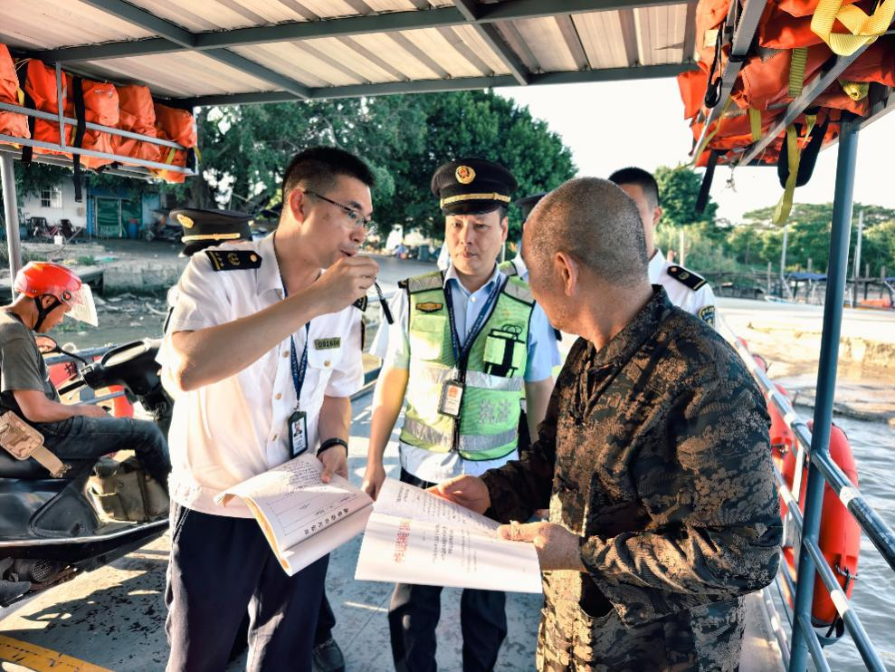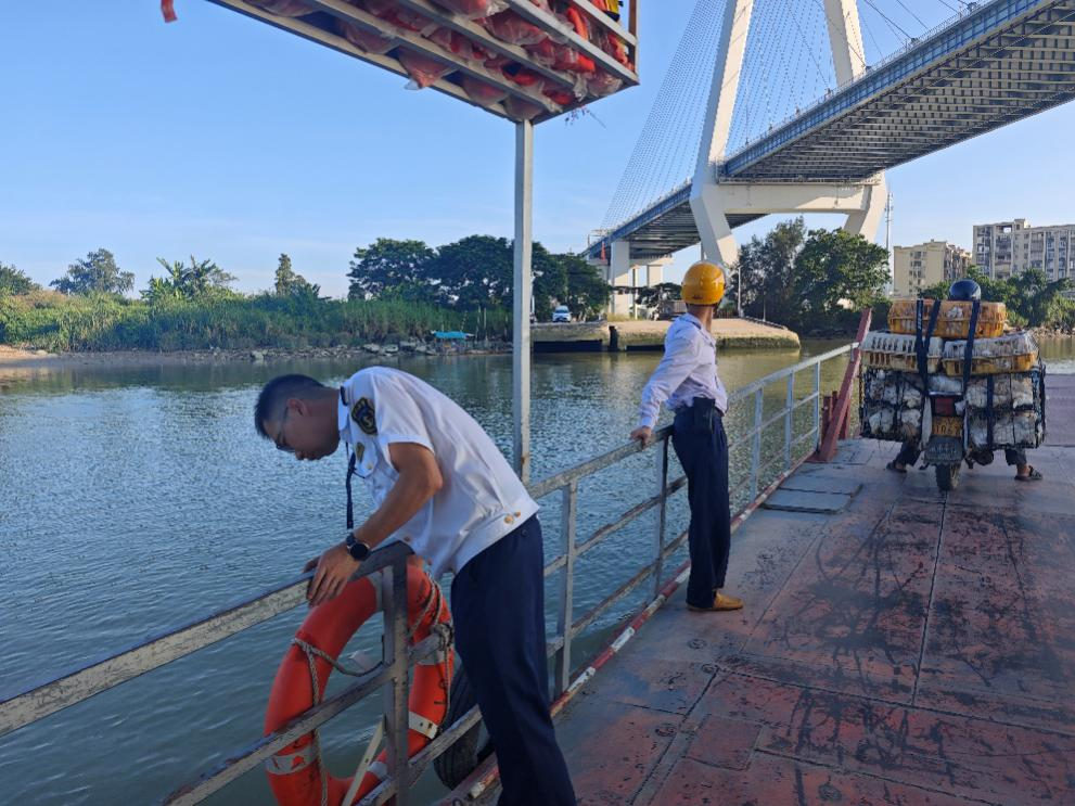 为做好国庆、中秋假期辖区水上交通安全监管和服务保障工作,落实《揭阳海事局2025年国庆中秋假期水上交通安全监管和服务保障工作方案》要求,国庆假期首日,揭阳南河海事处联合揭阳市交通局对京浦渡口、林厝渡口开展现场巡查和随船监管工作。