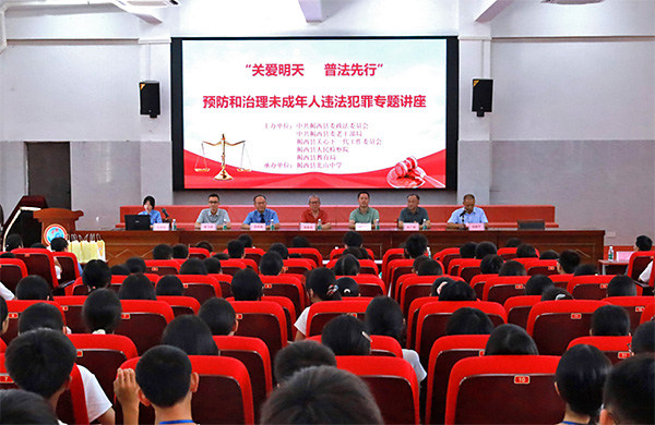 为深入推进预防和治理未成年人违法犯罪工作,10月14日下午,揭西县关工委联合县委政法委、县委老干部局、县检察院、县公安局、县教育局在揭西县北山中学举行“关爱明天 普法先行”预防和治理未成年人违法犯罪专题讲座。