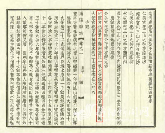 清乾隆《揭阳县志》载昭灵宫资料。郑哲坤 截图