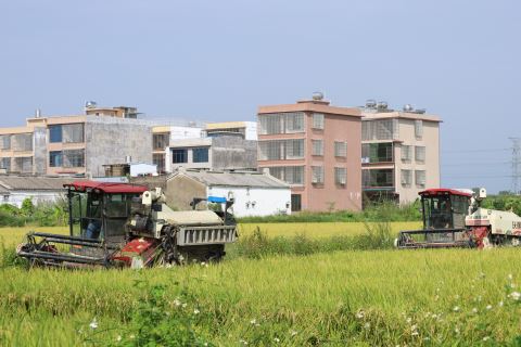 金秋时节,揭西大地稻浪滚滚、金满田畴,全县晚稻陆续进入成熟收割期。从棉湖、坪上镇到凤江镇阳夏片区,田野间处处是繁忙的秋收景象,农户们抢抓晴好农时抢收稻谷,揭西县农业农村局技术人员深入田间提供专业指导,机械化收割高效推进,共同奏响秋日里的“丰收曲”,全力确保秋粮颗粒归仓(见图。通讯员 摄)。