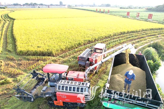 金秋时节,稻浪翻滚。眼下,我市部分晚造水稻已成熟,金黄饱满的稻穗与蓝天相映,勾勒出丰收图景。种粮大户抢抓晴好天气,加紧收割水稻,秋收大幕正式拉开。揭东区锡场镇潭王村在农机的助力下,田间地头呈现出 “机声隆隆、颗粒归仓” 的繁忙景象。 林洁松 文/摄