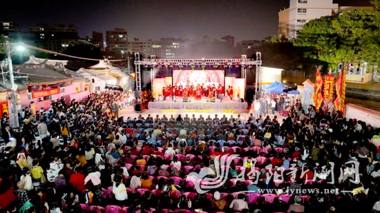 11月28日晚8时,榕城区东升街道东泮村王氏家庙前,首场古城“村”晚在这里正式开演(见图。杨小琪 林碧鸿 摄)。