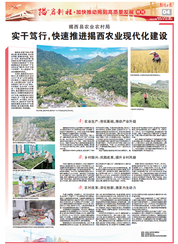 揭西县始终坚持以习近平新时代中国特色社会主义思想为指导,深入贯彻“农业兴县”工作部署,在农业生产领域持续发力。今年来各项工作取得新进展,为推进乡村全面振兴奠定了坚实基础。